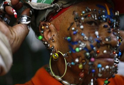一名巴西清潔工臉上打滿各式各樣的孔。翻攝《中國日報網》