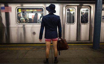 2014 年1月12日參加不穿褲子搭地鐵活動。翻攝《中國日報網》