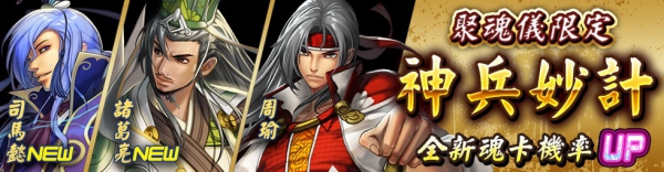 活動內容:期間,諸葛亮、司馬懿、周瑜於聚魂儀中獲得 A 機率提升!