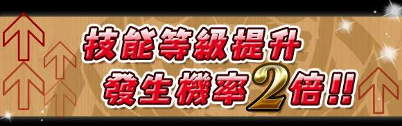 活動期間,強化合成時「技能等級提升(スキルレベルアップ)」的發生機率為 2 倍 UP。