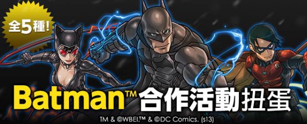 蝙蝠俠 」中的各種角色將在合作活動扭蛋中再次登場!通過合作活動扭蛋可以獲得「羅賓(ロビン)」、「貓女(キャットウーマン)」及各種式樣的「