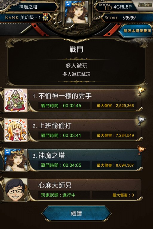 手機遊戲《 神魔之塔 》(iOS/Android)團隊先前在 7.0 版本的更新預告中釋出開發「 多人遊玩 」系統的消息,並曾在香港「神魔玩慶2014 @ 香港動漫電玩節」的「神魔學堂」中讓部分玩家率先體驗。