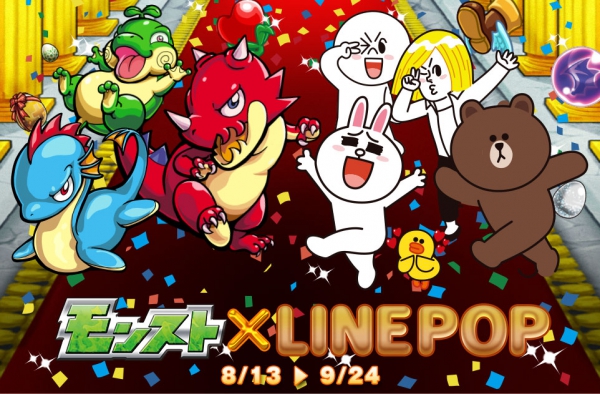 由 mixi 所研發營運的手機遊戲《 怪物彈珠 》與 LINE 旗下的《 LINE POP 》今日聯合宣布,兩款遊戲在 日本 地區將實行相互合作企劃,時間自 8 月 13 日至 9 月 24 日為止。