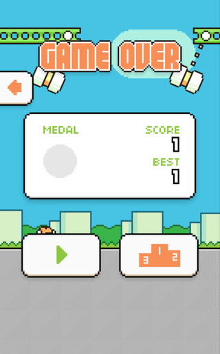 《 Flappy Bird 》並無太大差異,畫面風格也十分類似,每一次失敗都可以很快速地重啟遊戲。值得注意的是,若是成功拿到 4 個遊戲中的獎盃,即可解鎖更多不同的角色造型。