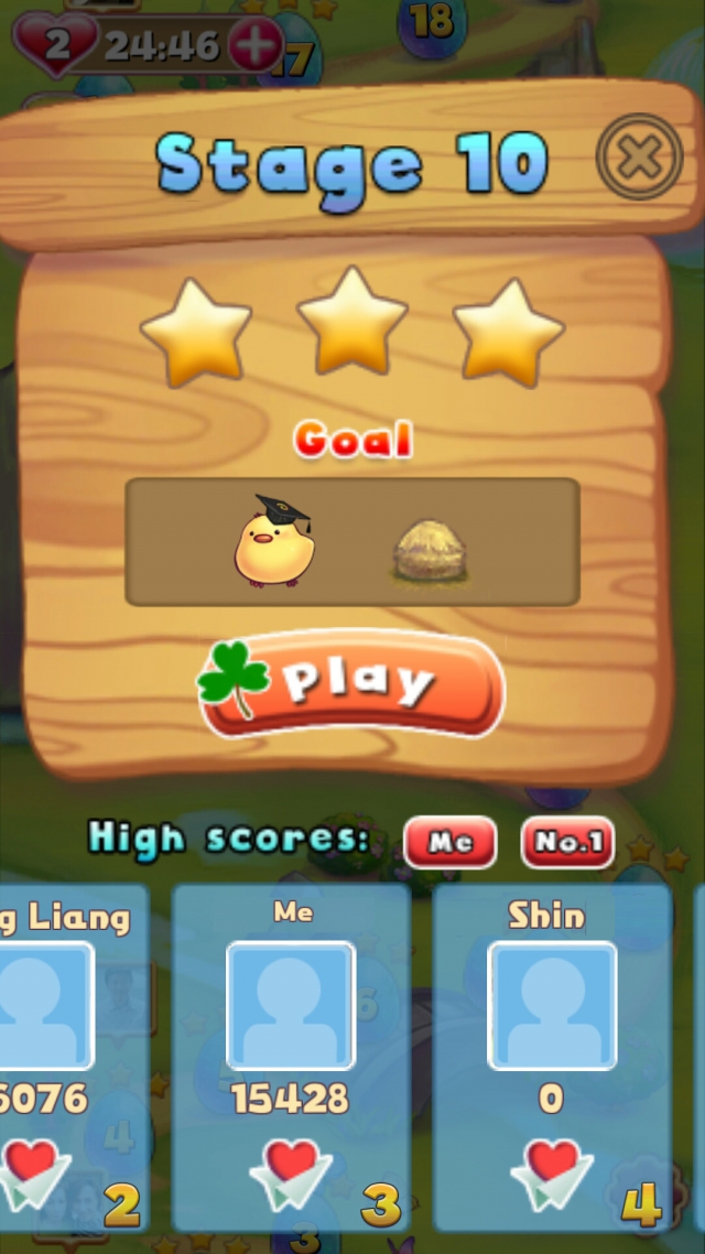 《 Chicken Scramble 》也融入了社交系統,在每次回來遊戲時,玩家將會在主地圖上看到朋友們行進中的關卡;每一個關卡中也可以看到該關卡朋友的得分及排名。
