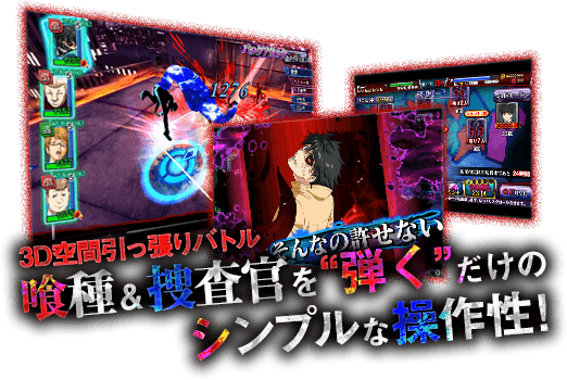 東京喰種 carnaval 》,官方主打光與暗的 3D 戰鬥的表現形式來再現作品中那危機四伏的處境和背景,可拖曳並簡單操作著角色在 3D 地圖中橫越,更可利用多采多姿的技能、地圖中的高低差等障礙物件來對付敵人。