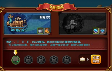 ▲赤壁之戰中的草船借箭可獲得大量的銀兩銅錢