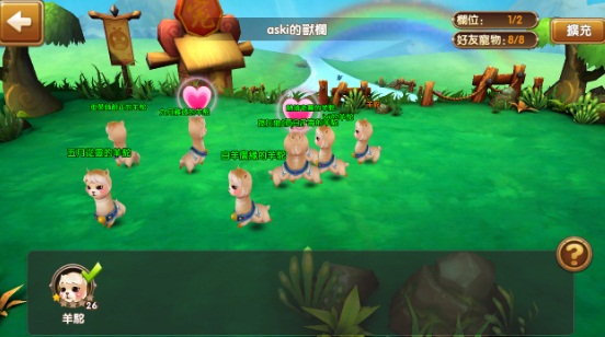 而寵物只要在獸欄裡待機即可以獲得經驗升級。另外也可以和好友們互送經驗,這也是讓寵物更快成長的方法。在和其他好友們的寵物交配後(有點害羞),可以得到進化寵物的道具。