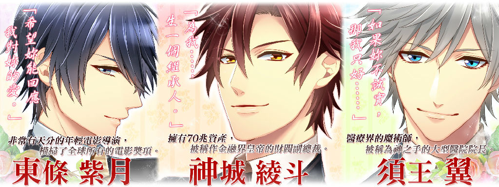 公測時將一口氣推出三位個性大相迴異的帥氣老公主線劇情。