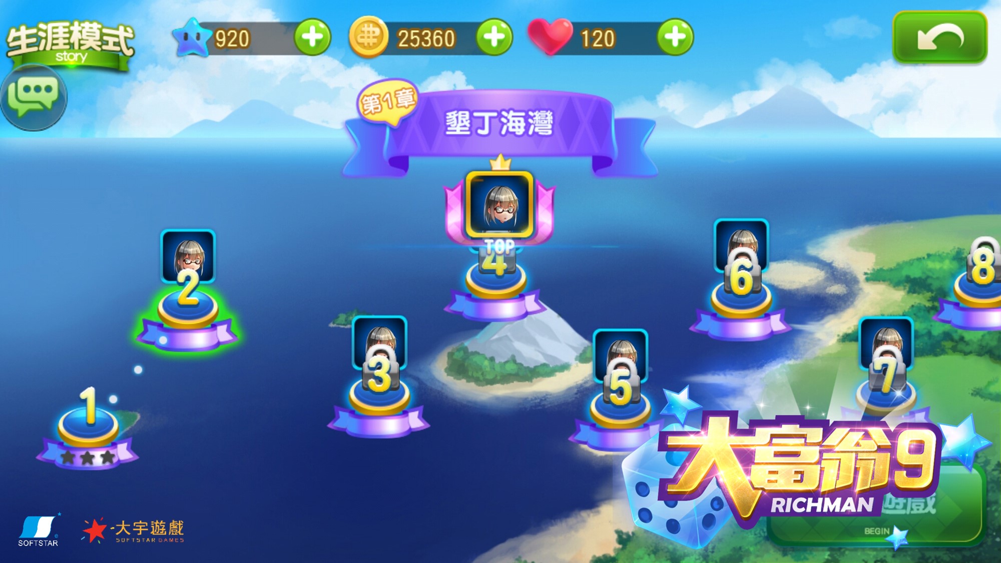 除了這些刺激對決的模式之外,玩家要是想要挑戰自己或是想尋找有趣的遊戲發展,「生涯模式」可是玩家的第一選擇。本模式為採副本解鎖的方式,玩家可不斷挑戰新的任務與地圖,尋找《 大富翁9 》當中的有趣故事,說不定還會發現一些不為人知的對手角色。