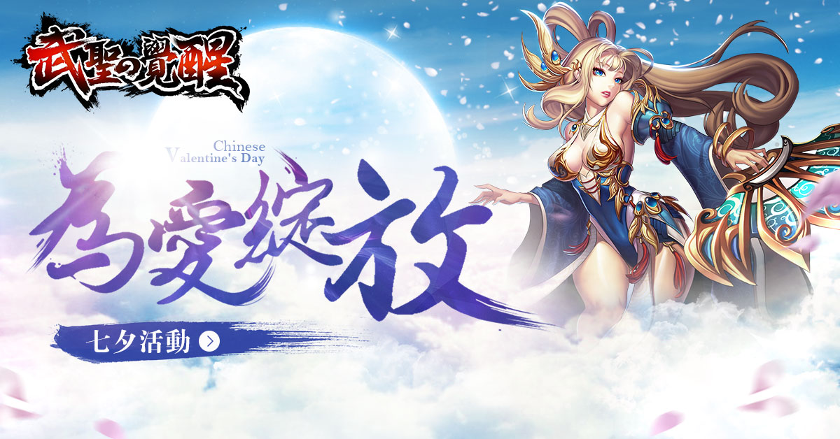 七夕 將至,空氣中到處瀰漫著浪漫幸福的味道。無論您是單身亦或情侶相伴,《 武聖的覺醒 》永遠真誠地陪伴在您的左右。為了回饋各位玩家,浪漫 七夕 ,《 武聖的覺醒 》精彩活動輪番轟炸,活動搶先看: