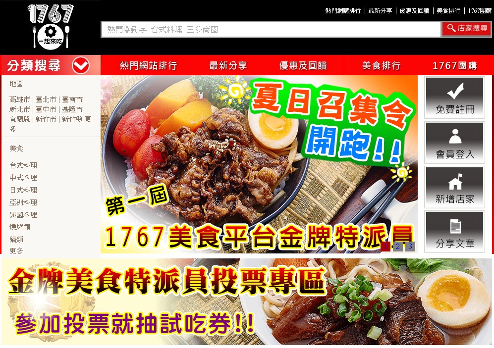 於1767美食平台首頁開放網友投票點讚 |