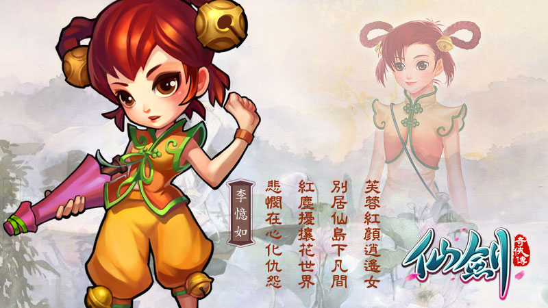 李憶如,女媧族後裔,趙靈兒和李逍遙之女。年僅八歲便擁有巨大靈力,心地善良,古靈精怪,喜好結交朋友,不經大腦的調皮搗蛋和沒有修飾的說話方式有時讓人頭疼。與蘇媚成為好朋友化解了她心中的仇恨。