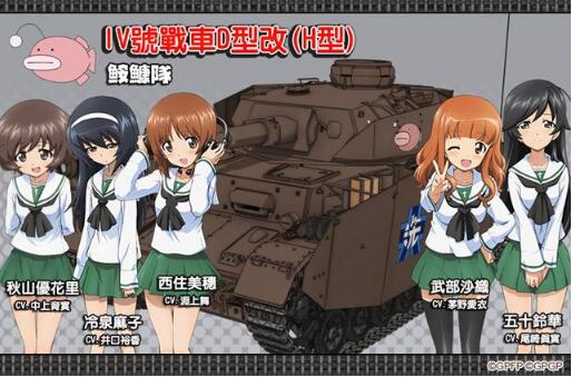 大洗女子學園的主力戰車為「IV號戰車」,擁有相當強的火力,也是二次世界大戰中德軍裝甲師的主力車種。被德軍裝甲兵暱稱為「軍馬」的IV號戰車不僅擁有比盟軍戰車更優良的性能,而且由於H型戰車主炮倍徑為48,所以火力也十分強大。IV號戰車戰功彪炳,甚至在二次世界大戰結束後還有許多國家都想購買來當作國防主力戰車,可見其高評價。