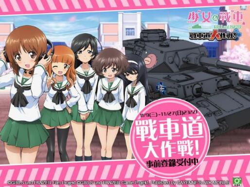 即日起至11月27日,玩家只要在《少女與戰車 戰車道大作戰!》FB粉絲團按「讚」並分享「事前登錄活動」至個人FB塗鴉牆,就有機會獲得《少女與戰車》日本限定週邊商品。