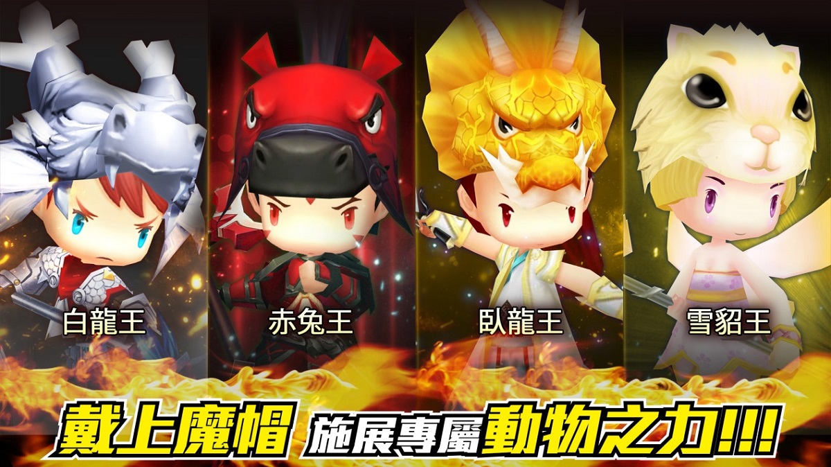 玩家在冒險的旅途中,將會遇到許多三國名將的後代並尋求他們的幫助。傳說當年三國名將,將自身的力量封印在動物造型的魔帽內,讓自己的後輩得以繼承這股力量。比方當年的三國第一猛將呂布,便將自身的武勇之力封印在『赤兔帽』中,而當其後裔呂小布戴上這頂『赤兔帽』時,便可獲得當年那個驍勇善戰的呂布的武力加持。若帶上諸葛孔明的『臥龍帽』,則是將大大的提升法術和輔助能力,因此若想要提升這些小將的戰力,務必要替他們尋找專屬的魔帽!