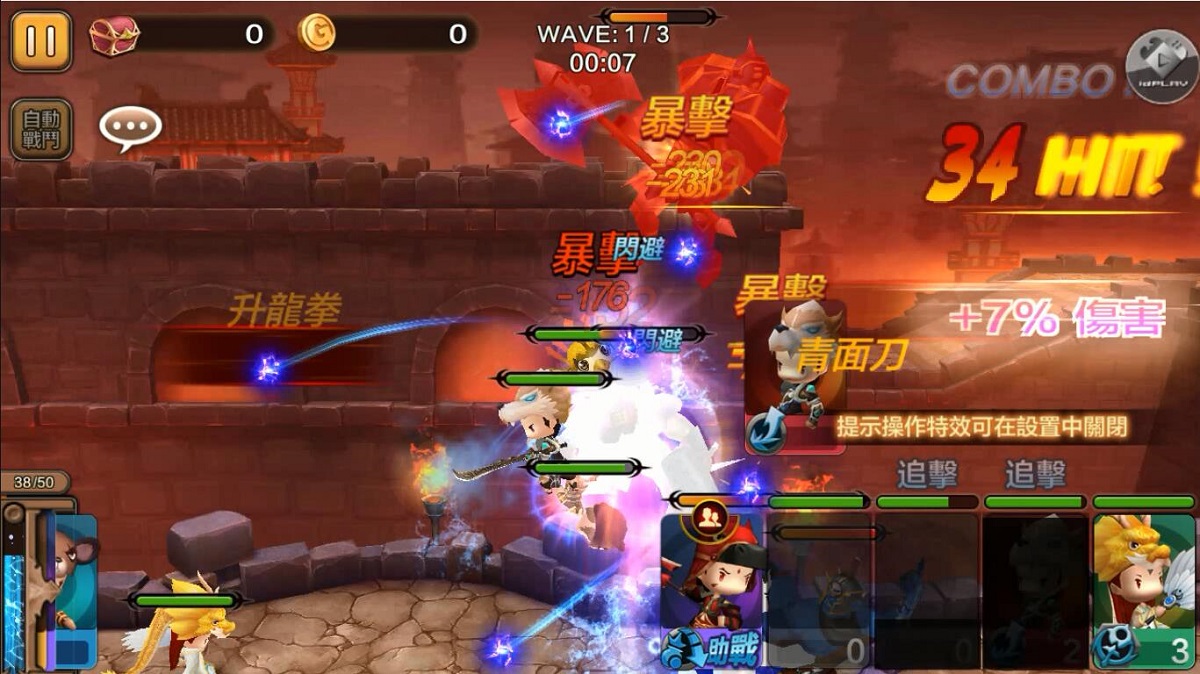 昇龍拳!波動拳!齁溜肯!熟悉的招式全部都回來啦!最簡單的操作將帶來最愉快的遊戲體驗,不用複雜的招式表,三歲小孩也會玩,一指滑動就可使出必殺技將敵人打飛在空中,遠程射手趁勝追擊,從後方對敵人造成COMBO連發打擊!前面的小嘍囉給我站住,吃我一發波動拳吧!