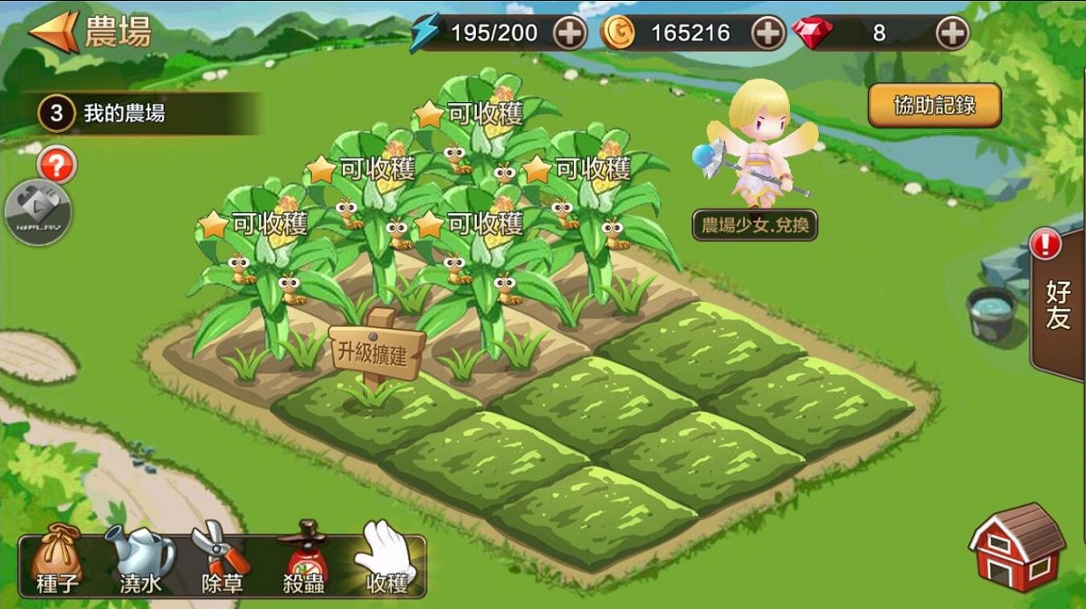 在莊園系統中除了可種菜獲得對應的農作物之外,幫助好友澆花除草也可以