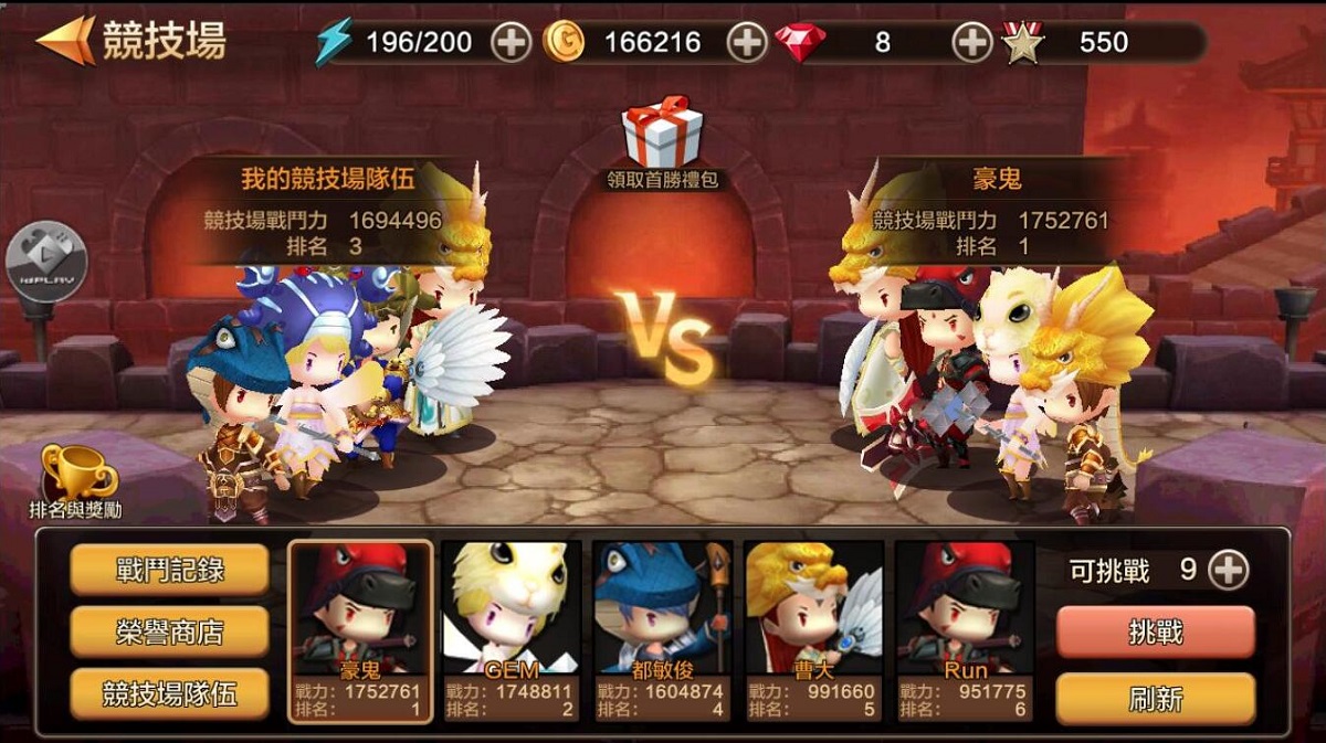 在競技場中需要另外調整陣容,戰力並非決勝的關鍵,而是在陣容的調整及技能的施放時機,將大大的影響戰局。