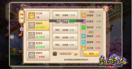 世間萬物相生相剋,在《 夢幻誅仙手機版 》中的陣法也是一樣。所以玩家們在排兵佈陣的時候,除了要考慮每種陣法位置所帶來的屬性加成外,還要考慮到各陣法間的相剋關係。不過玩家也不用太過於擔心,在《 夢幻誅仙手機版 》陣法界面右側,都可以查看每一種陣法對應的克制陣法及被剋陣法,讓大家在配陣時能更加得心應手哦!