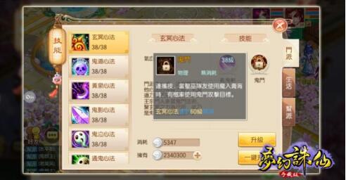 (圖:《 夢幻誅仙手機版 》門派技能介面)
