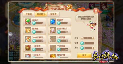 (圖:《 夢幻誅仙手機版 》積分兌換介面)