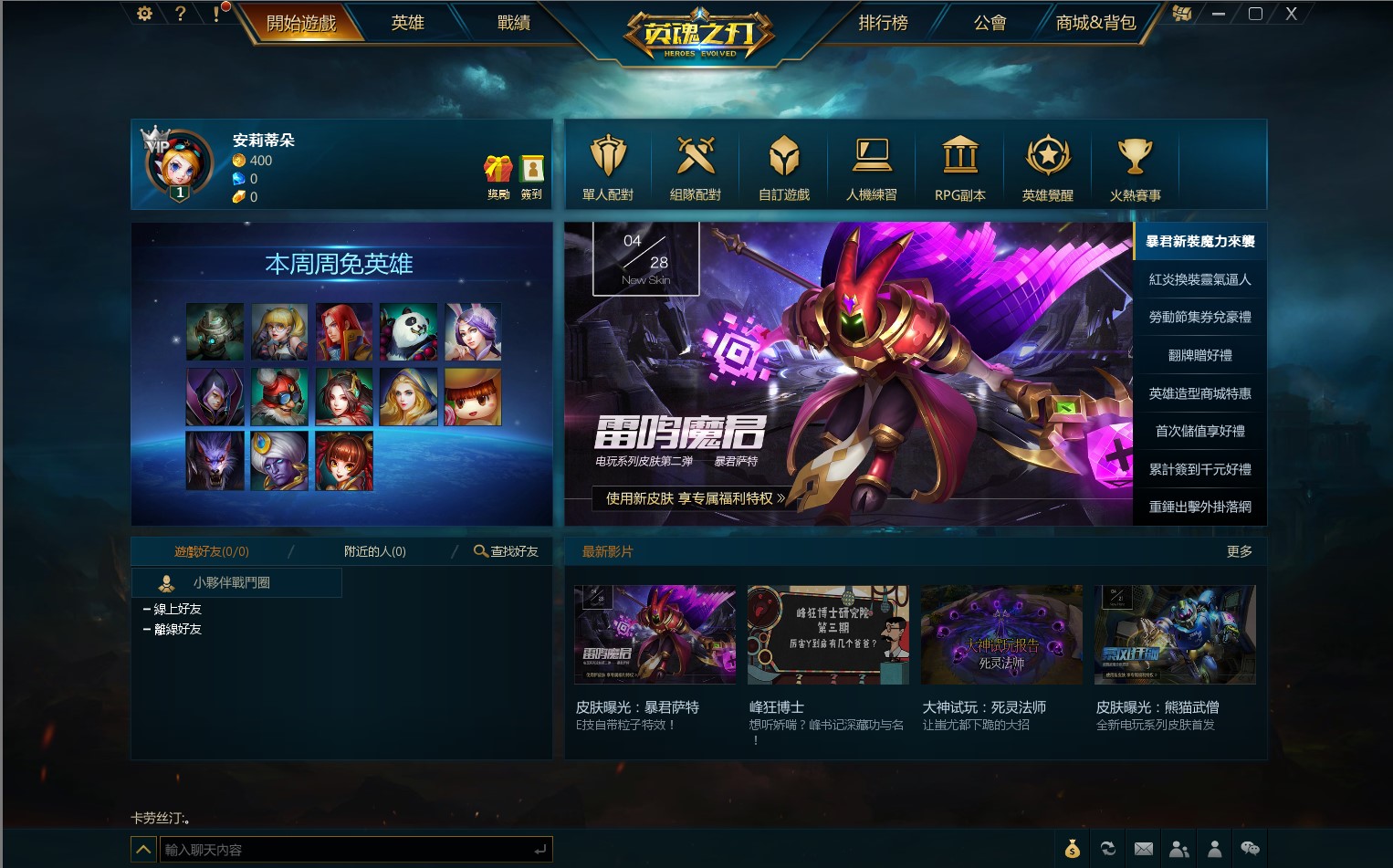 選擇你喜歡的英雄,然後進入戰場展現英姿吧!
