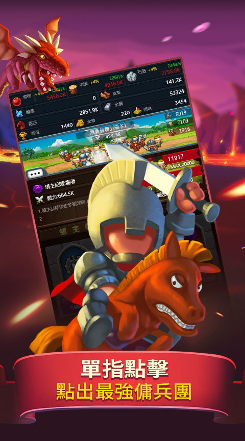 獨特的兵團系統,無論是活躍前線的步兵、靈活敏捷的弓箭手、殺傷力強大的騎士、傳說中的龍都在等您招募。兵團還可穿戴裝備增加能力值,不僅帥氣酷炫、戰力數值更是嚇死人!還不快招兵買馬,培養出屬於自己的一流軍隊!