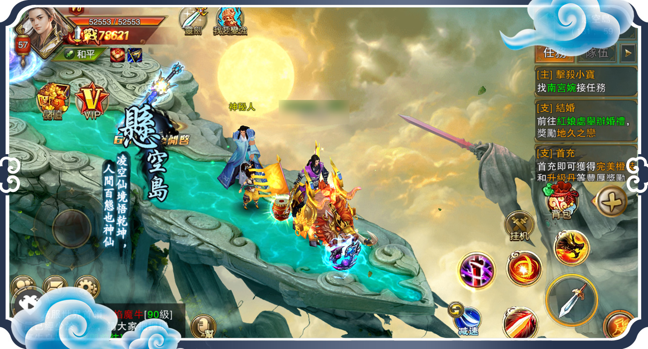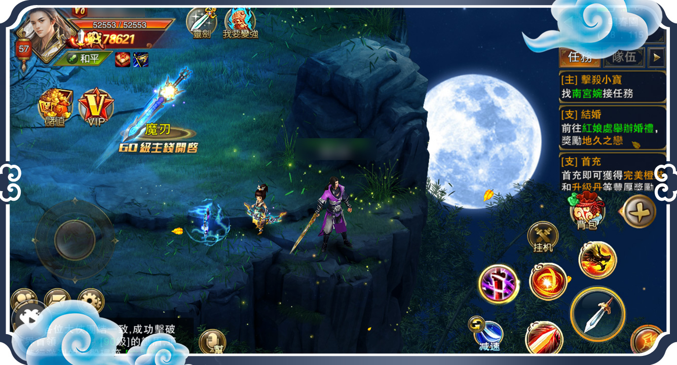包含淩煙閣、京都城、玉虛峰、極樂宮、太行山等多張地圖場景,構建出豐富多彩的江湖世界!在這裡你可以用輕功飛簷走壁、也可以選擇騎乘坐騎,遊歷大江南北,尋找你的江湖故事。在遊戲中,可以將自己的地圖坐標發送到世界頻道,讓夥伴找到你的身影!還更方便與妳心愛的她一起相約組隊同遊和刷世界BOSS了!