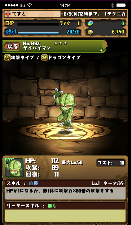 技能:給予敵人攻擊力200倍的傷害