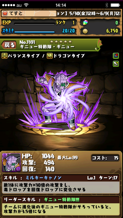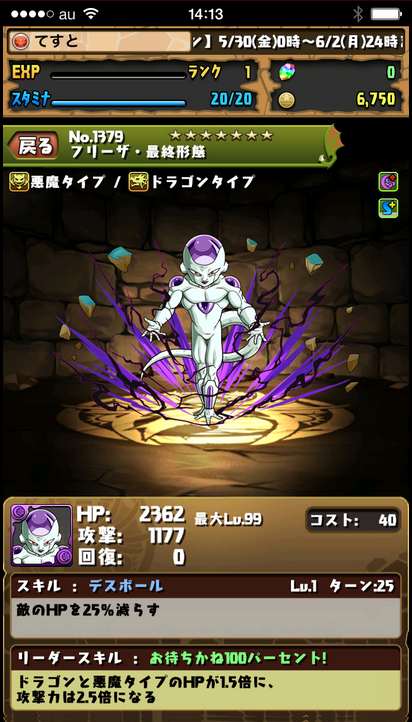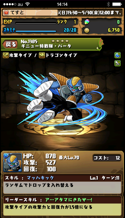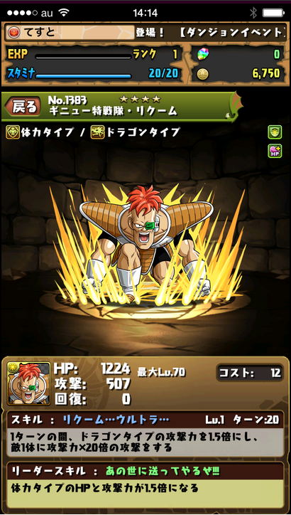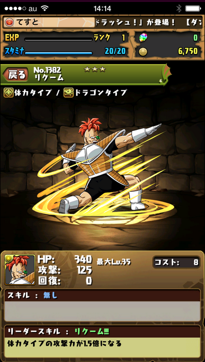 主動技:1回合龍Type1.5倍&敵一體20被攻擊