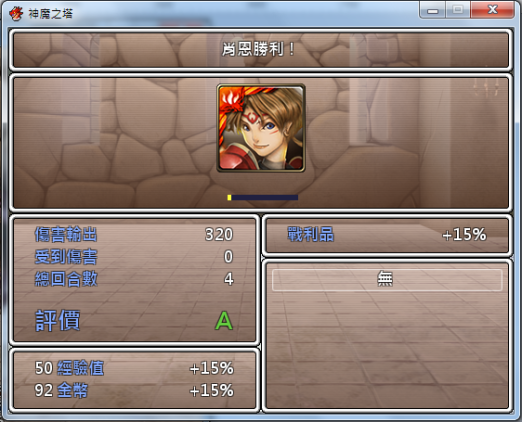 ↑很貼心的幫大家附上戰鬥後的結算畫面,例如獲得經驗值、獲得金錢、角色升級、獲得戰利品等等!(還有評價欸雖然我都沒打過S ,XD