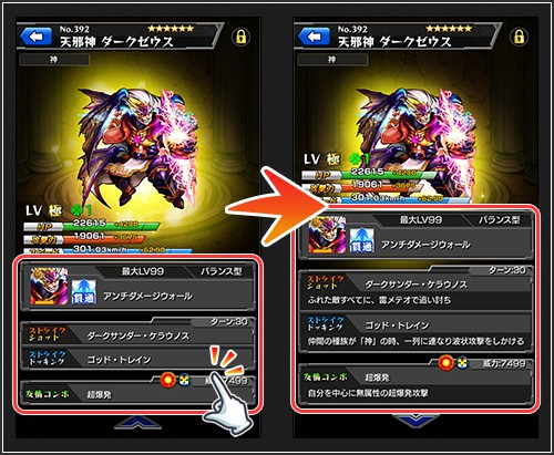 若將帕窩塔斯王當作想培育之角色的「強化合成」素材,不管是什麼樣的角色,「攻擊力」的 + 值都會直接變為 MAX。