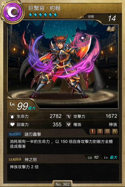 「黃道十二宮(上篇)」系列「昇華」後,不但在生命力和攻擊力得到提升,更在可在進場時減短發動技能的時間。金牛宮、獅子宮及巨蟹宮更能在最高「昇華」階段中獲得技能的提升。據了解,巨蟹宮將能在瞬間爆發出自身 150 倍的強力攻擊,而金牛宮和獅子宮,在包括自己在內共 3 位隊員能發動主動技能時,即能透過自身主動技能獲得全隊 2 倍攻擊長達 8 回合。