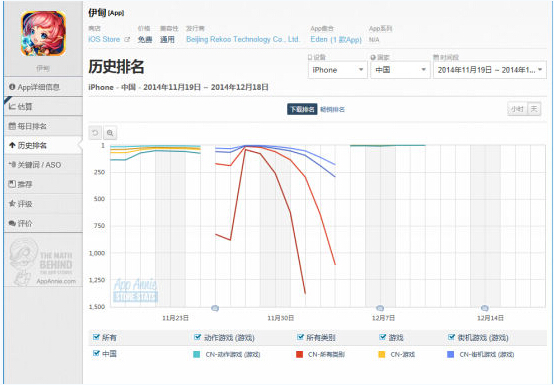 隨後,本輪刷榜風潮便被蘋果盯上,進行刷榜的App無一例外地被蘋果懲處,其中就包括上文提到的那些遊戲。而12月4日測試刷榜的那一批App,也在隨後幾日出現排名消失的情況。