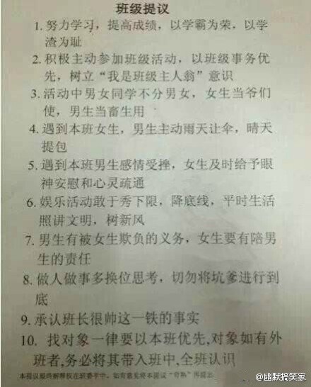 一網友發出他的班級班規,看到這個班規我也是醉了![拜拜]
