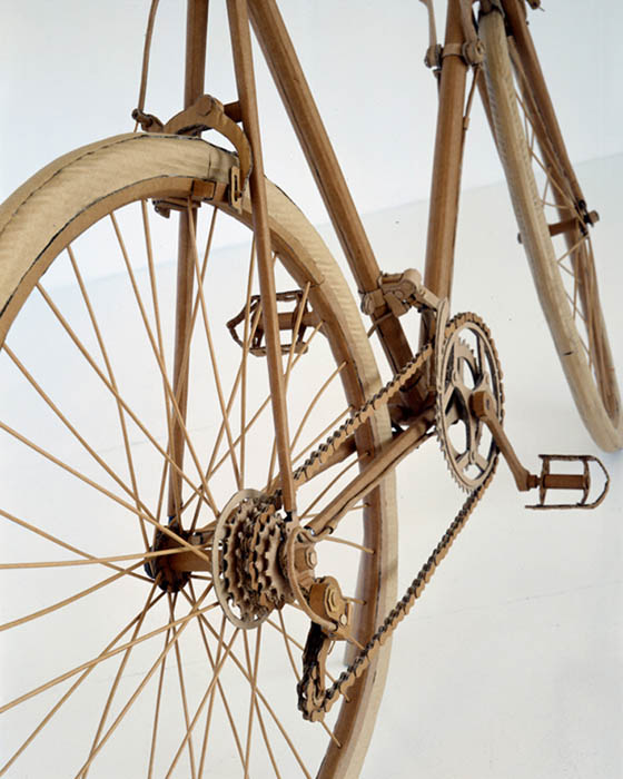 透過從各個管道回收而來的紙板,Chris Gilmour創作出了許多不同題材、大小的超強作品,不論是大尺寸的賽車、機車、腳踏車,就連尺寸稍小的地球儀、相機、顯微鏡,Chris Gilmour也都能利用他精細的手工 + 紙版來忠實的呈現,而且每一個作品的小細節都不放過 (車子裡面會有座椅、方向盤、儀錶板、排擋),用神乎其技來形容絕不為過。