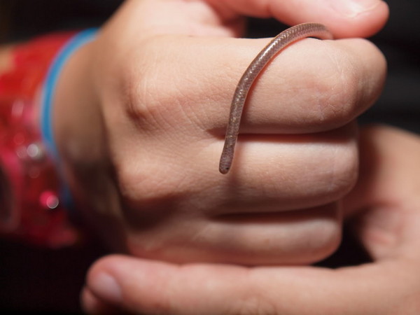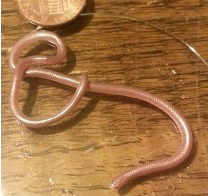 這條是 德州細盲蛇 ,牠的學名為Leptotyphlops dulcis,平常生活於地下,由於不需要接觸陽光,基本上屬於全盲。牠們的外表像蚯蚓,鱗片主要呈現粉紅色與棕色,一條成年的 德州細盲蛇 最長只有20公分。