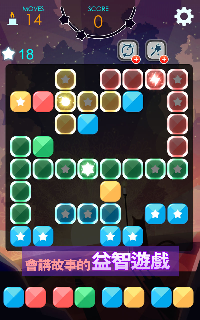 黑貓“凱特”拾起白貓離去後留下的蠟燭權杖,穿過黑暗,點亮繁星,一場尋找自我亦是尋還真愛的旅途,最終去往心之所向。玩家將和“凱特”一起,在璀璨星河中挑戰關卡,解鎖劇情,完成奇險。