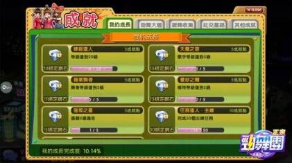 《 正宗勁舞團 -手機版》中的「成就系統」則是為玩家設定短期、中期、長期目標,是可以見證玩家成長過程的主要系統。「成就系統」分為「我的成就」、「勁舞大咖」、「服飾收集」、「社交星路」、「其他成就」等五大種類,玩家只要達成相關成就所需條件,即可獲得大量綁鑽及遊戲中的稀有資源。《 正宗勁舞團 -手機版》「成就達人」的稱號,等你來挑戰哦!