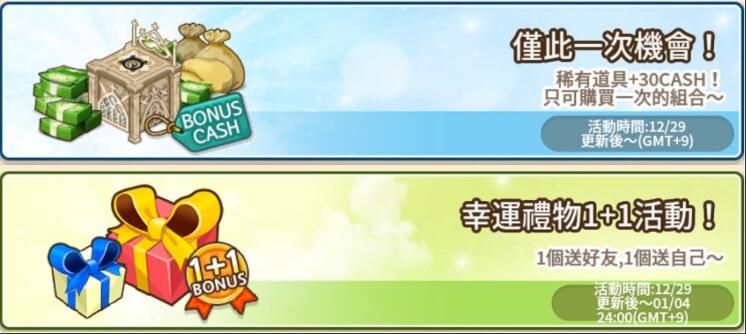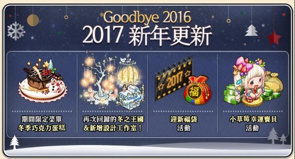 還推出將商店內的道具送給好友時,可獲得相同道具的「1+1禮物活動」、為揮別2016年並迎接即將來臨的2017年準備了豐富的活動,各位玩家敬請期待。