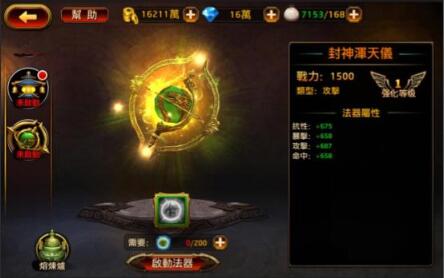 封神渾天儀為高強的攻擊法器,不只外型勝於早前已公開的紫砂寶葫蘆、海天琉璃盞,周身散發出的魅力前二者無可比擬。厚實的攻擊加成無疑又是戰力提升的一大優質選擇!傳說中的一則內幕是如此說明:手中握有大量「封神珠」才可使封神渾天儀現世。該如何做,主公心底已有八分打算了。