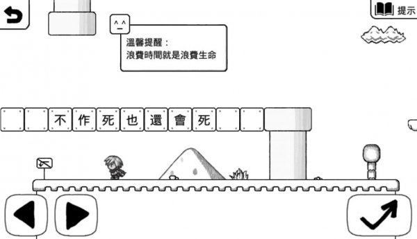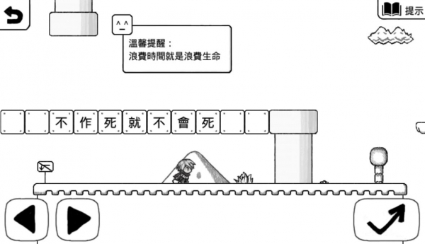 而隨著劇情的需要,在動作關卡之間也穿插著一些…嗯,「借鑑」其他熱門遊戲的關卡,像是植物大戰甚麼的、還有 Flappy 甚麼的。雖說基本的過關方式都與原作相同,不過還是讓筆者提醒各位:在這樣一款虐人的遊戲中,難道你認為能用正常的方式來過關嗎?