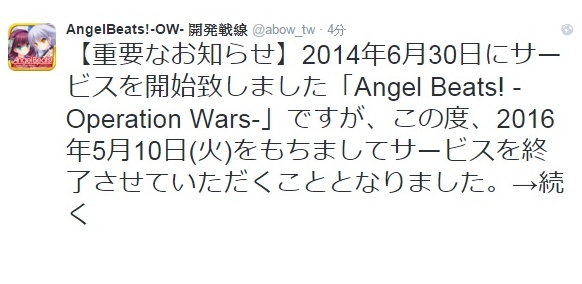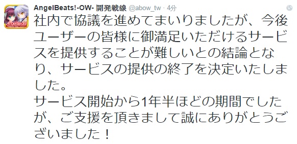 官方於Twitter上的結束營運告知