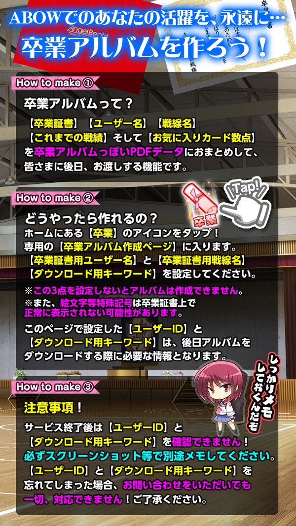為了不讓支持遊戲至今的玩家的心中留下遺憾,遊戲也將推出新功能「畢業紀念冊」!