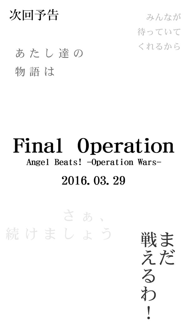 遊戲在 3 月 10 日的維修完後,同時也宣布遊戲將於 2016 年 5 月 10 日的下午 14:00 正式結束營運。而透過Mobage 幣來購買課金道具和AB硬幣等的販售也將在 4 月 8 日停止販售。有關遊戲的結束營運,遊戲官方表示「遊戲自 2014 年 6 月 30 日正式開始營運,就在一年半的這個時候經過我們的慎重討論之後,我們作出了以現況的服務是無法滿足所有玩家的結論。也因此很遺憾地不得不在這邊宣布將正式結束遊戲的營運,也感謝大家在這些日子以來對遊戲的支持」。