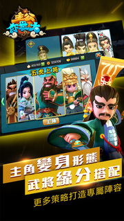 Description ·獨創主角養成,自由變身為神魔形態; ·極致畫面表現,爽快十足的戰鬥體驗; ·豐富策略戰術,變化萬千的陣容搭配; ·趣味活動試煉,戰鬥之余可輕松娛樂; ·比武對戰系統,挑戰極致的玩家競技; ·完善收集系統,極具特色的三國群英; ·萌化歷史劇情,動畫電影般講述傳說。 黃巾起義敗落之後,張角走火入魔,發現南華仙子所贈《太平真言》另有奧秘。 他以性命換取十萬陰兵虎符,從鬼門關入世,夜行千裏,反攻長安。 董卓大軍與黃巾鬼兵相峙不下,為求更大力量,以張角為首張氏兄弟挺身走險,打破冥界法門,從此陰兵入境,亂世之景更甚人間地獄。 鬼神之力,可吹噓風雨,...