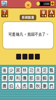 說明 "over my dead body." "以牙還牙,加倍奉還" "賤人就是矯情" "對不起,我又自私了" "斷開鎖鏈,斷開魂結" 這些名言你一定聽過,但 究竟是出自誰的口? 或者是哪些膾炙人口的廣告? 或是百看不厭的經典電影? 或是耳熟能詳的流行歌曲? 就讓我們回顧一下 看看你的腦容量是否都用在美好但沒啥作用的事情上面...XD 快搜尋關鍵字 天天猜名言, 天天, 猜, 全民, 名言, 成語, 小小工廠, 猜猜猜, kuso, 瘋狂